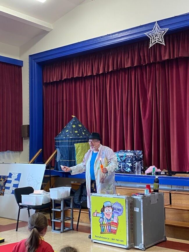 We had the best week in school for Science Week. We did lots of different experiments, Dancing Raisins, Skittle Rainbow, Sinking and floating to name but a few. We ended the week with a science show with Professor Baloney which was a great hit with the kids. Take a look at the videos to see…